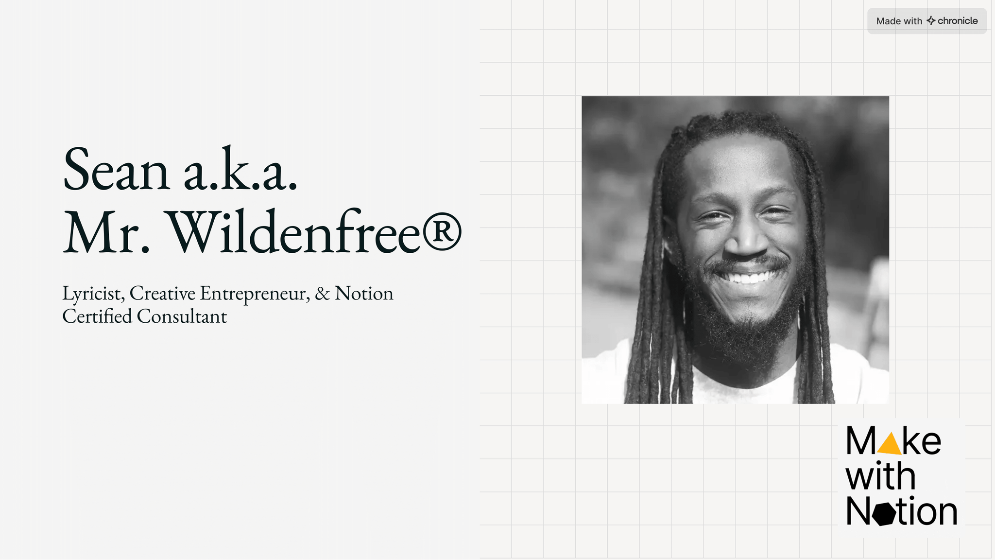 Sean Wildenfree, a lyricist, creative entrepreneur, and technologist, has been part of the Chronicle community since the early days. He’s one of those users who constantly pushes tools to do more: experimenting, giving feedback, and sending in feature requests that end up shaping the product.