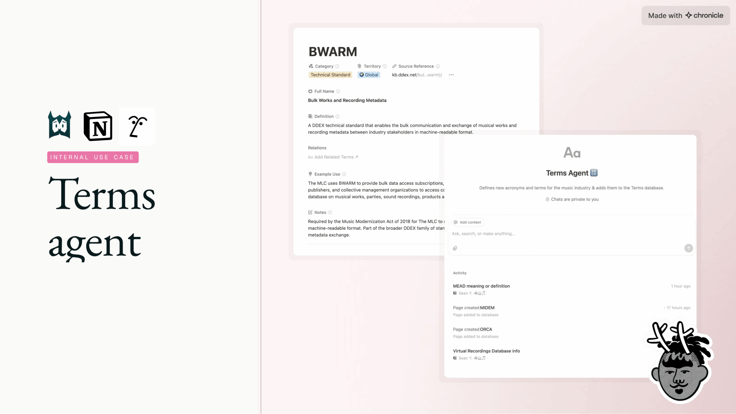 See Sean’s full presentation from the Make with Notion Conference, where he used Chronicle live on stage to demo his AI songwriting workflow.