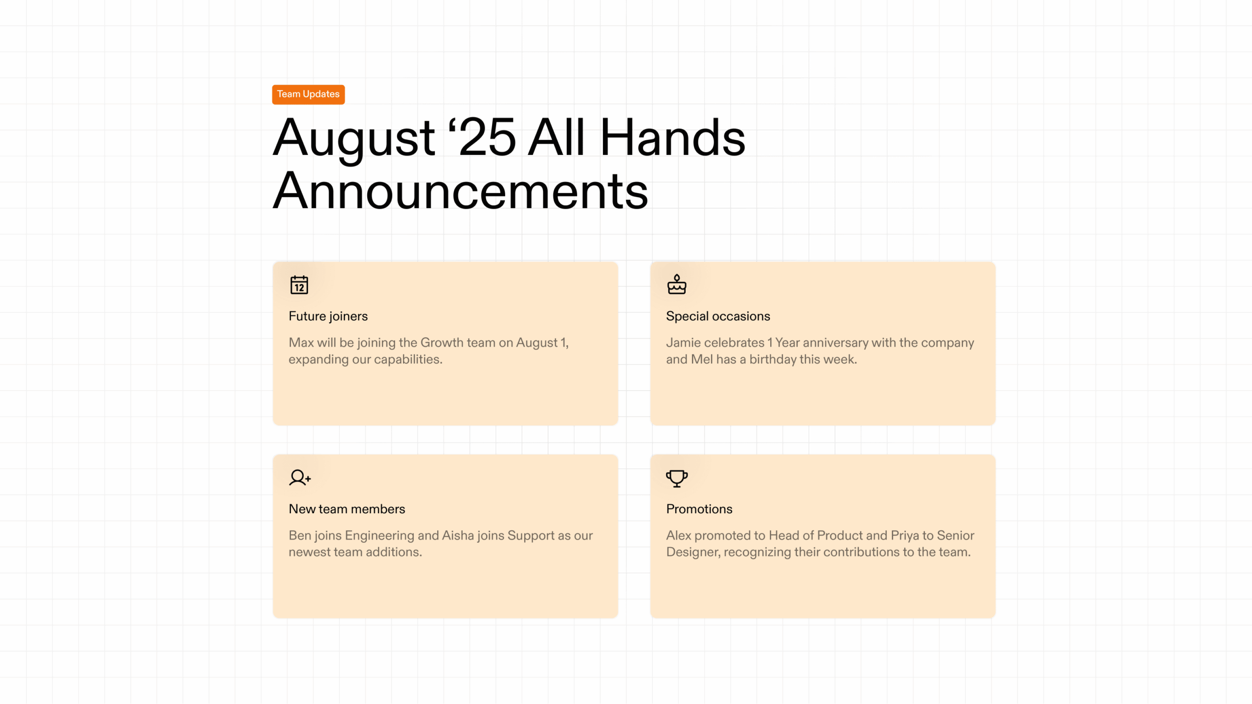 Stay aligned – clear roadmaps, all-hands, and sync presentations